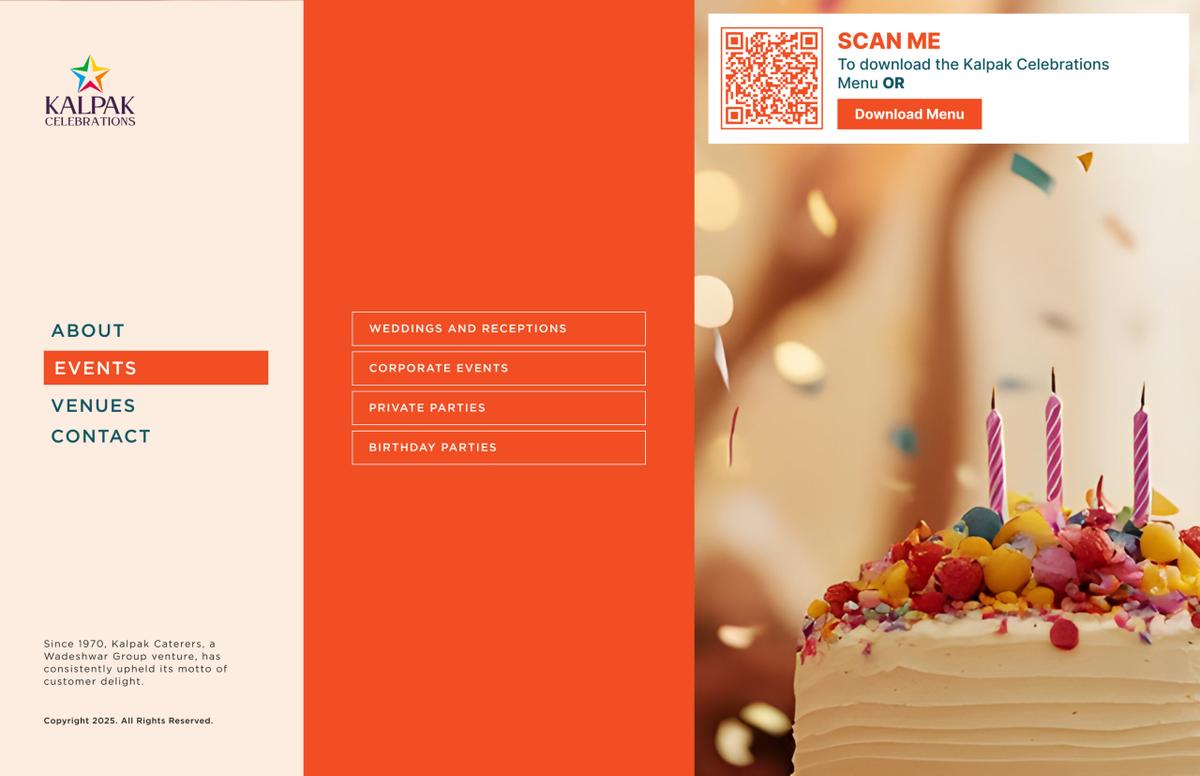 The website serves as a platform to showcase event services, venue options, and menu offerings while helping users explore and plan their celebrations easily.
