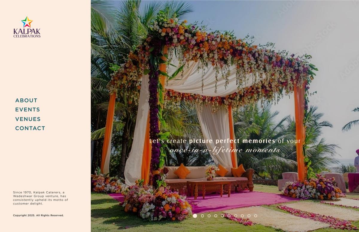 Kalpak Celebrations is a catering and event services brand known for delivering memorable experiences across weddings, corporate events, and private celebrations. The platform highlights their services, venue options, and customized catering offerings.