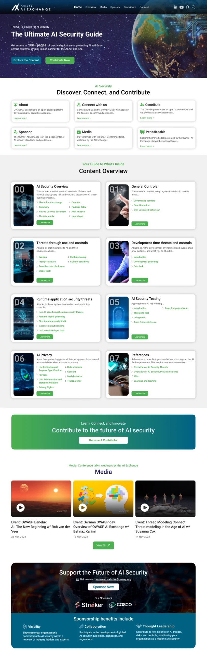 The platform was designed with a clean and professional interface that helps visitors quickly explore AI security topics, documentation, and project resources.