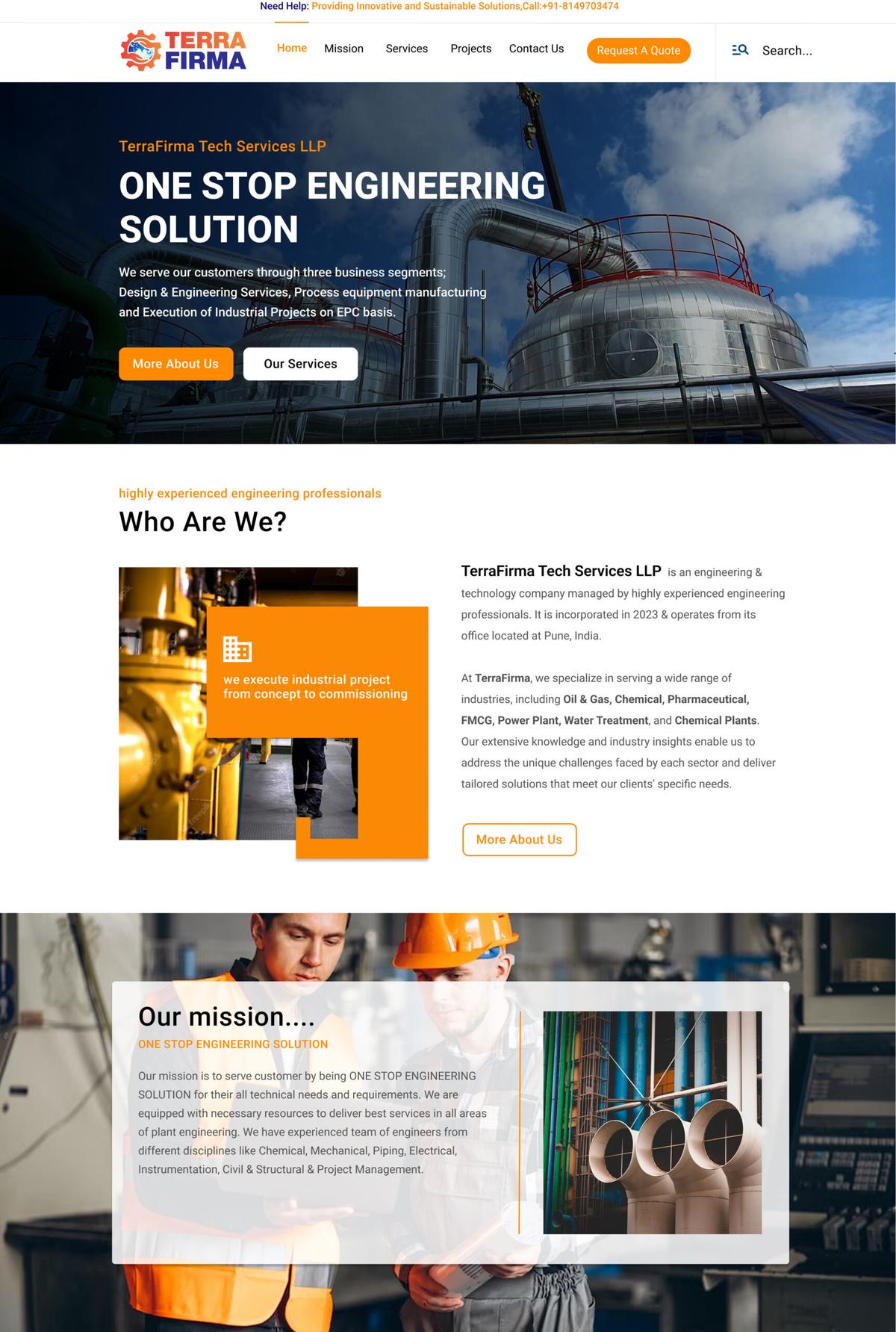 TerraFirma Tech offers a wide range of engineering services, including design, project execution, and industrial solutions across multiple sectors.